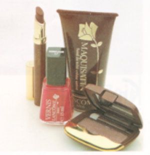 The tall bottle with glossy cap is Dior Diorskin liquid foundation.