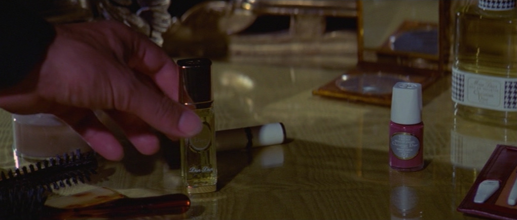 The miniature bottle by the mirror is Azzaro 9 by Loris Azzaro, another white floral fragrance launched in 1984.
