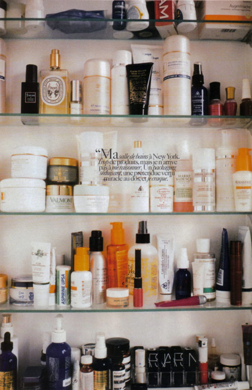 This beautiful portrait was taken by Richard Melloul in the bathroom of Birkin’s house in rue de la Tour, in Paris. You may recognise it as the bathroom which appears in Kung Fu Master! (1988) by Agnès Varda. Some of the perfumes and toiletries in this picture can also be found in the film.