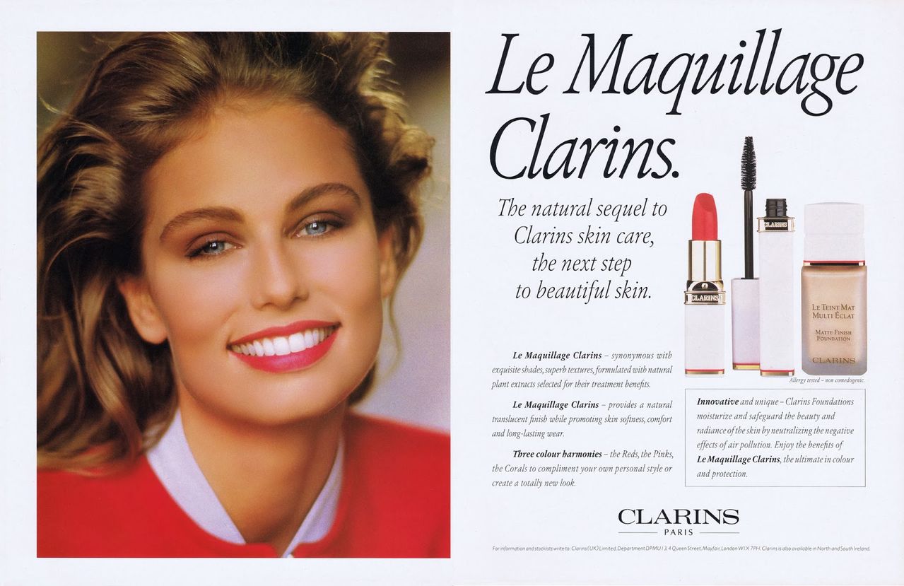 On the right side of the marble counter there are several skincare products. Among them, I can see a white jar and a white tube by Clarins (impossible to know what they contained) and Guerlain body creme.
