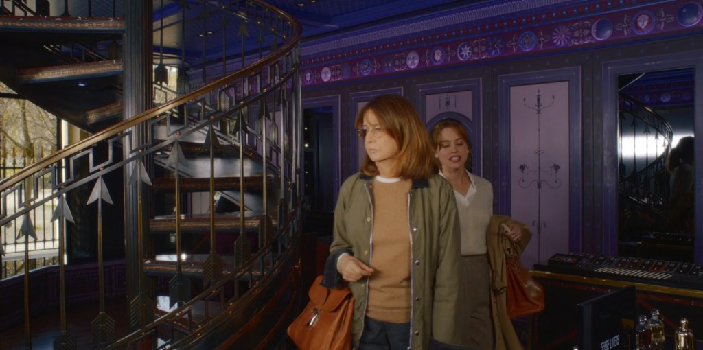 Fanny (Lou de Laâge) and her husband Jean (Melvil Poupaud) are getting ready to attend a party. There are several interesting skincare products and perfumes on her vanity.