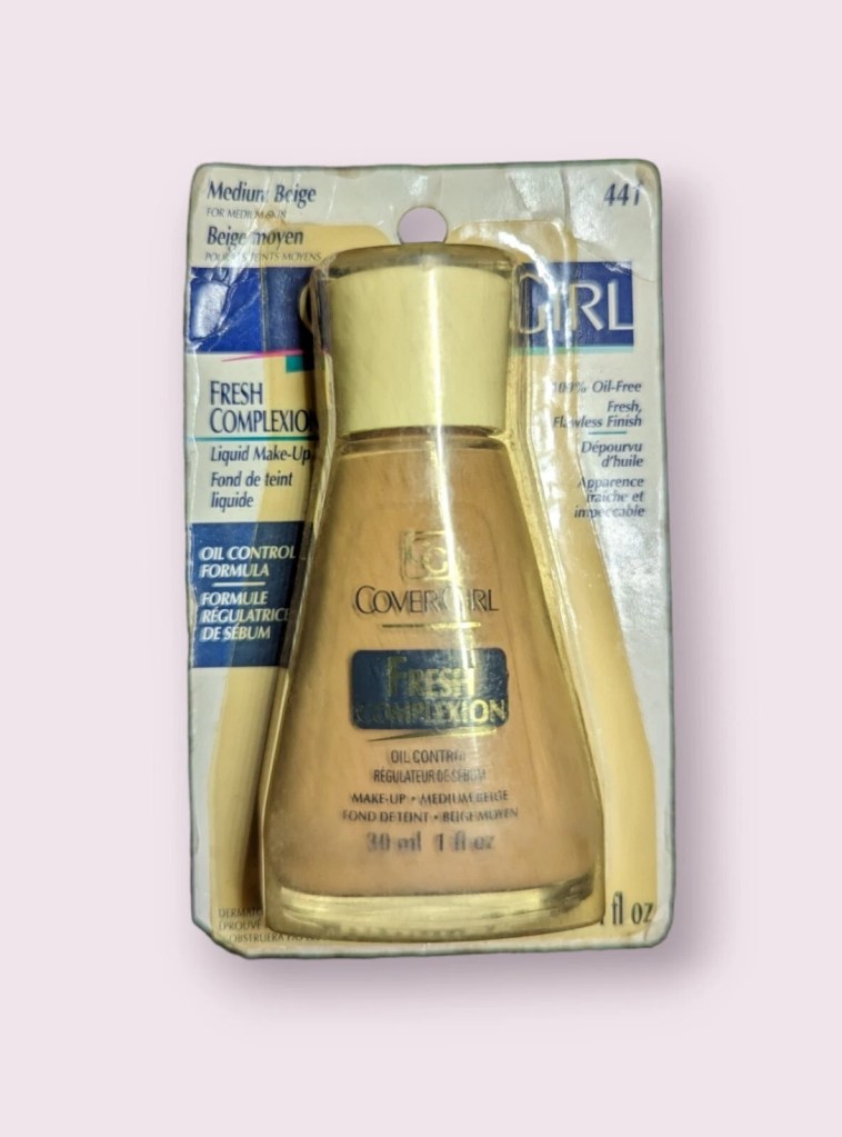 Reflected on the mirror, there’s also a bottle of Covergirl liquid foundation.