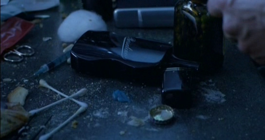 When the same dressing table appears in another scene, there are other two bottles on it.