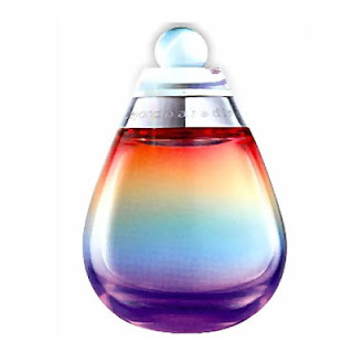 There are lots of perfumes on those glass shelves! On the top shelf, Paloma Picasso and Estee Lauder Beyond Paradise perfumes can be seen; on the bottom shelf there are Guerlain Chamade, Yves Saint Laurent Paris and Courreges Amerique.
