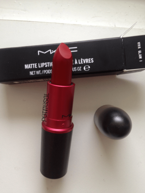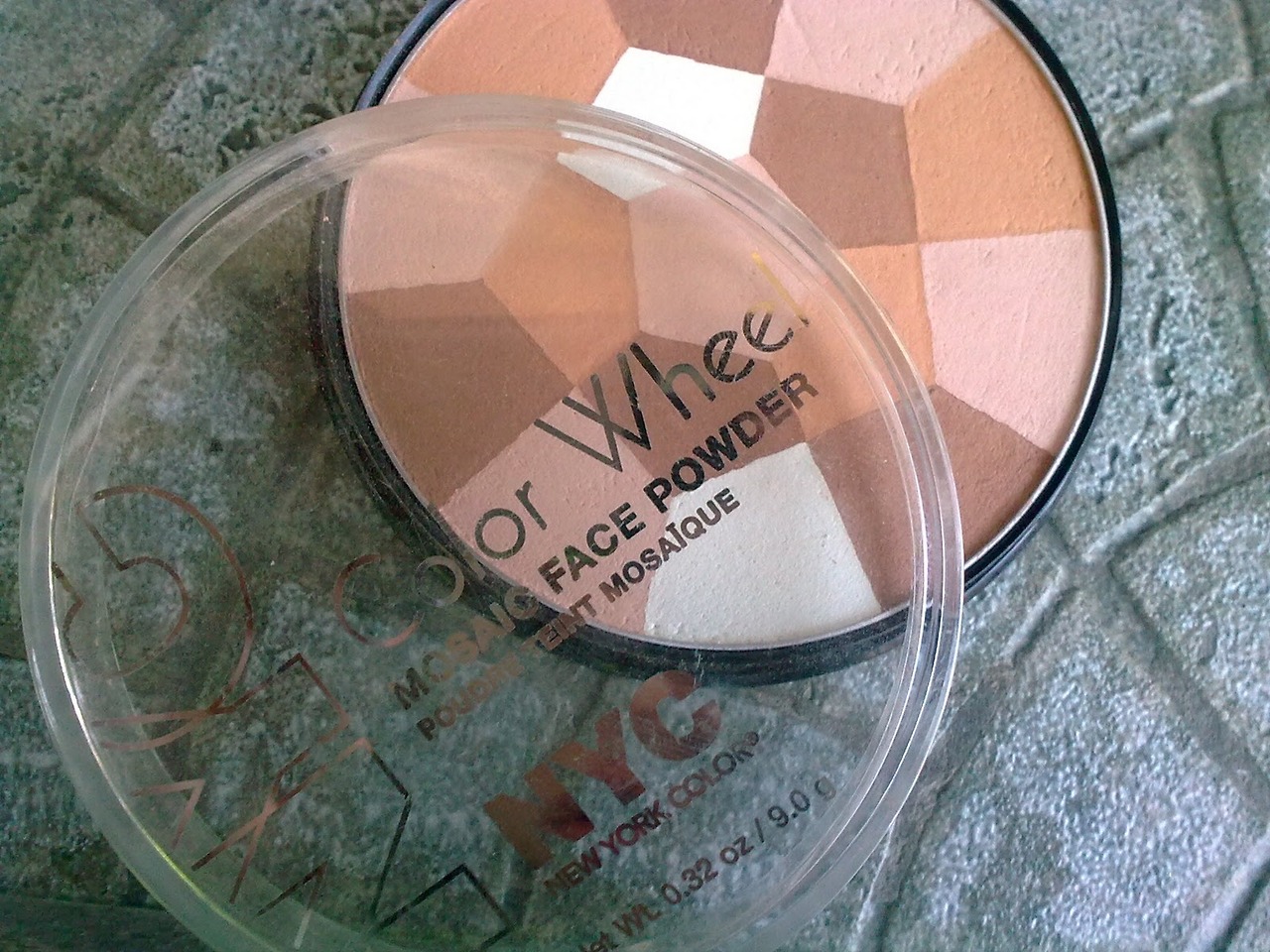 Revlon lipsticks, Givenchy Organza perfume, NYC Color Wheel mosaic face powder in Translucent Highlighter Glow on Genevieve Delatour’s dressing table.