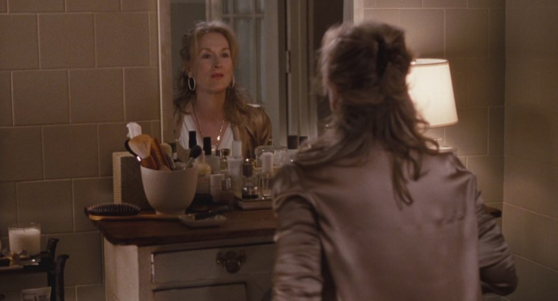 Two are the perfume bottles sitting on the table: the one with the white stopper is Clarins Eau Dynamisante, the sublime citrusy fragrance created by Jacques Courtin-Clarins in 1987; the one with the black stopper is by Diptyque, in the tall splash bottle which contained fragrances like Vinaigre de Toilette. Unfortunately, the label in the photo is blurry, so I don’t know exactly what perfume this was. But the layout allows me to make some guesses. This could be L’Eau (the first Diptyque perfume, launched in 1968 and created by Desmond Knox-Leet) or L’Autre (launched in 1973 and created by Serge Kalouguine), two classic spicy scents by the French brand.