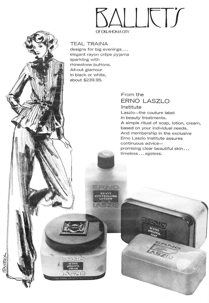 A big bottle of Rochas Femme and an Erno Laszlo jar (possibly containing face powder) sit on the heiress’ table at the Pocono Playhouse in Mountainhome, Pennsylvania, where she performed in the play The Swan by Ferenc Moldar. This happened in 1954.