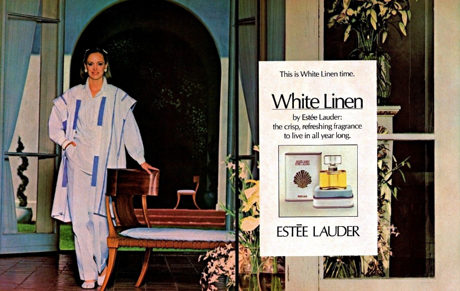 In the early 1980s she wears White Linen by Estee Lauder, a floral aldehydic fragrance created by Sophia Grojsman and launched in 1978.