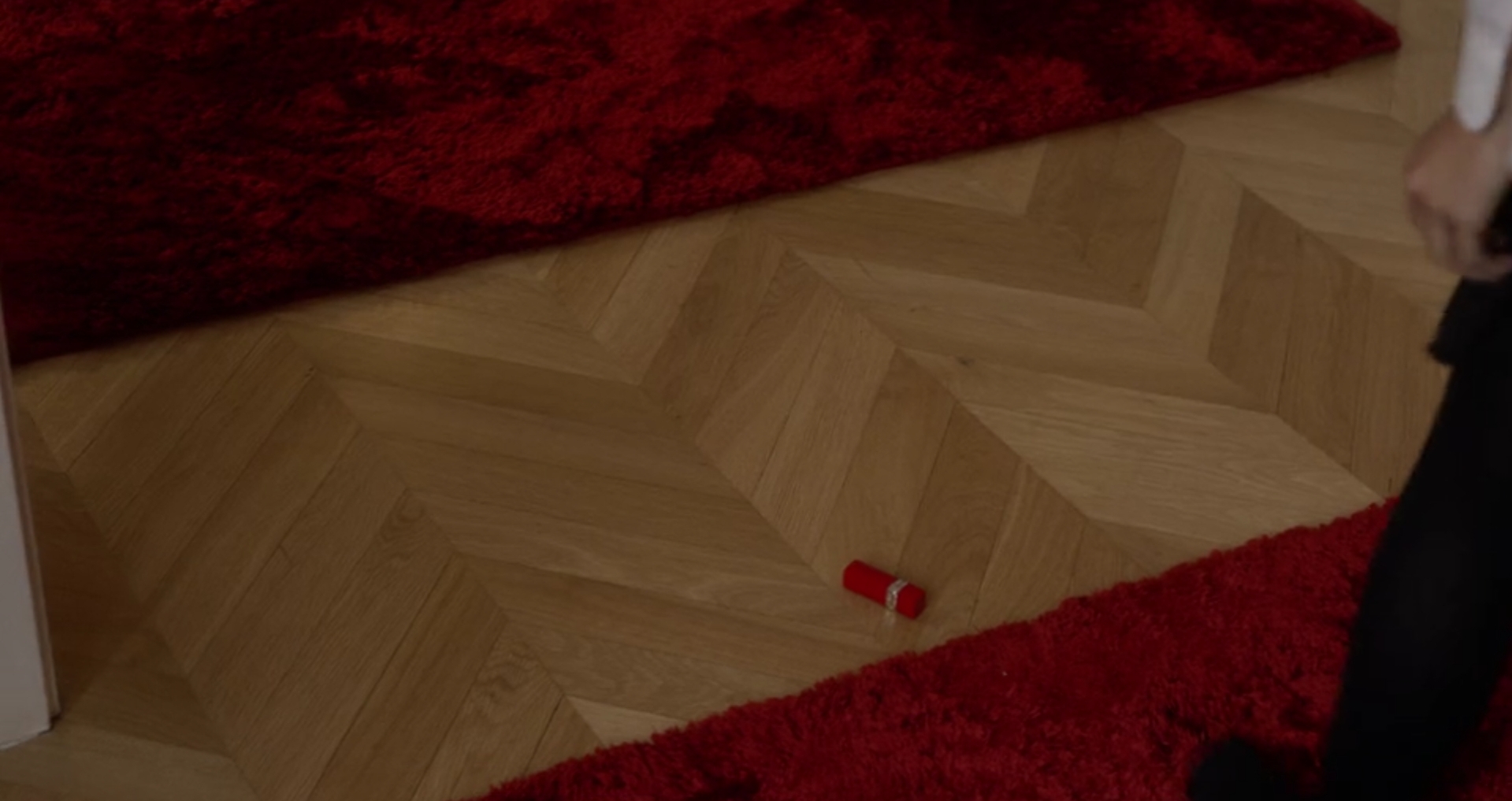 Chiara (Benedetta Porcaroli) finds a lipstick on her bedroom floor. It slips from Damiano’s pocket, but it belongs to Natalia. It’s Dior