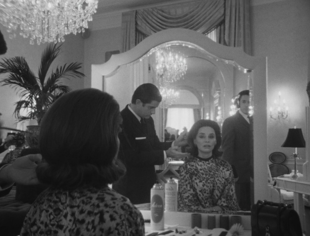 Lee Radziwill (Calista Flockhart) is getting her hair done, while the Maysles brothers are filming her for their documentary [1].