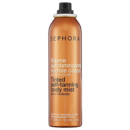 Bebe’s make-up stash includes two Sephora products – tinted self-tanning body mist and Perfection Mist Airbrush foundation – and a Clinique one – Perfectly Real foundation.
