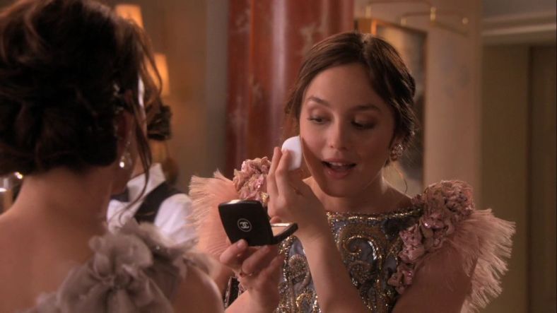 Blair (Leighton Meester) checks her face on a Chanel compact.