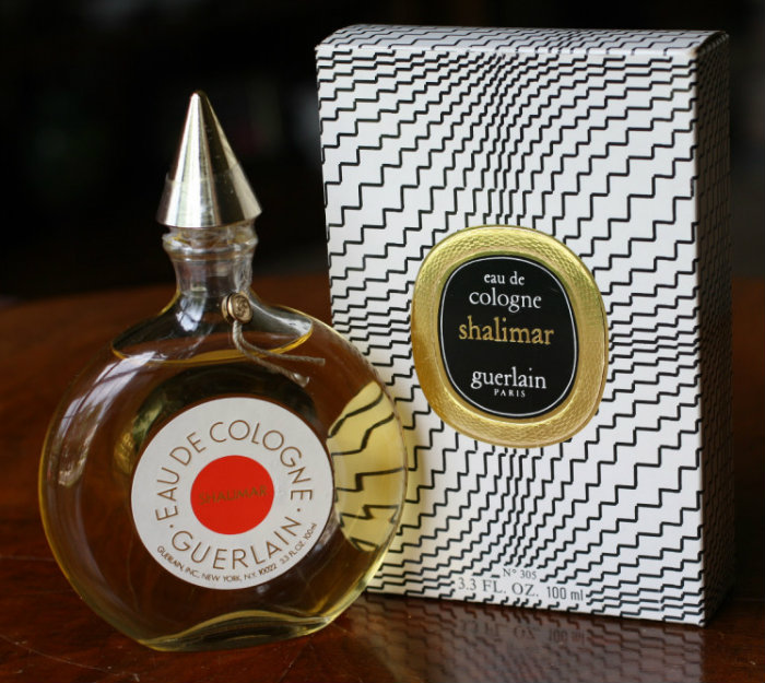 On the second shelf there are Guerlain Shalimar in the flacon chauve souris and another Guerlain fragrance in the flacon bouchon coeur.