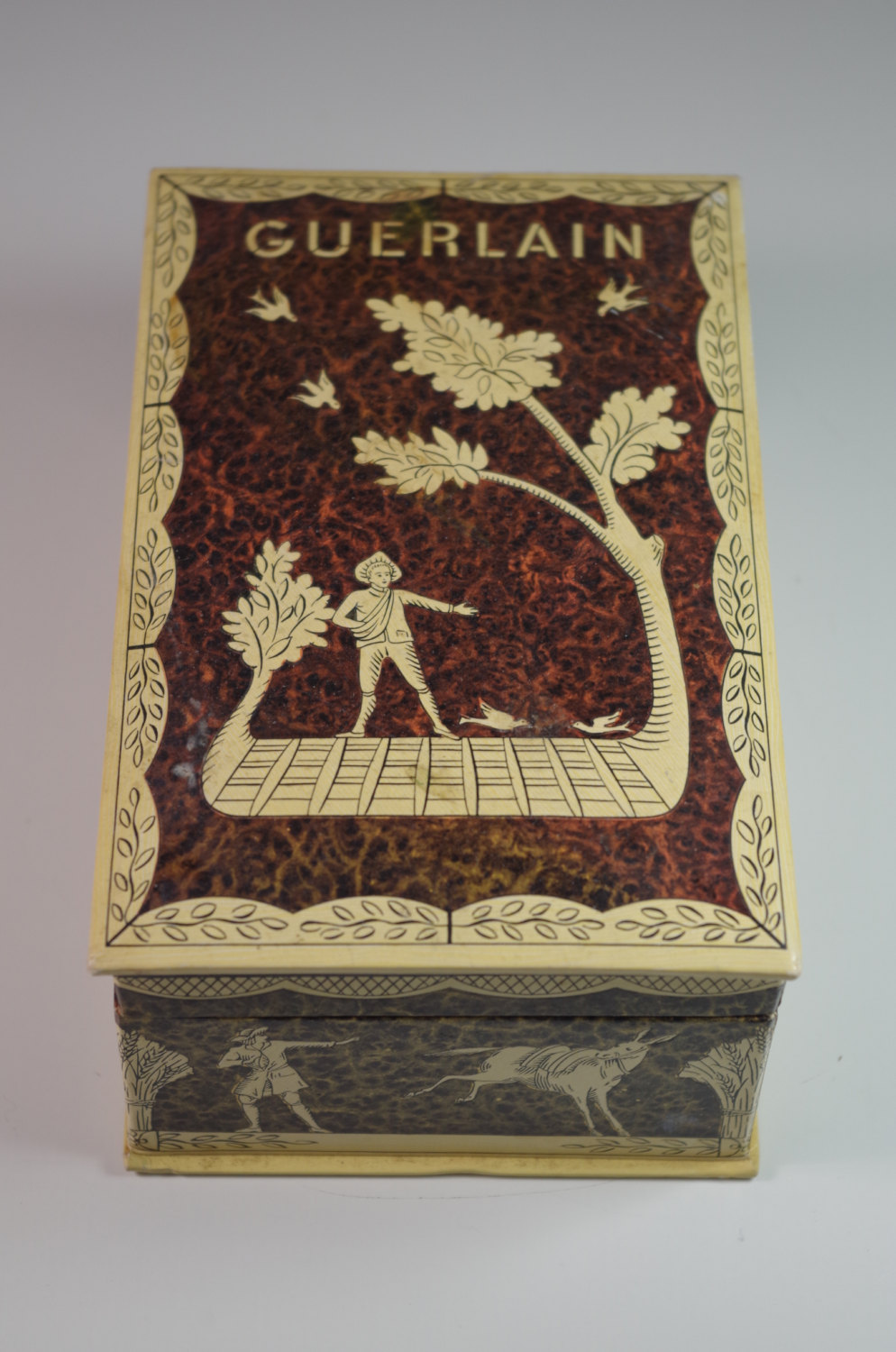 On a marble counter behind Clare there’s a Guerlain flacon montre of Shalimar eau de cologne (see the orange red disk).