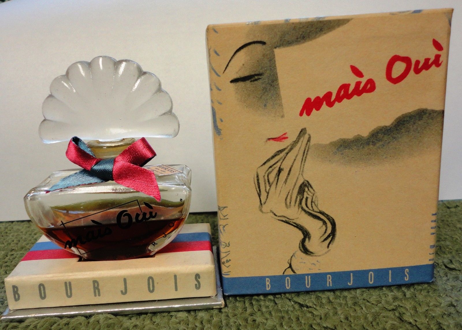 Starting from left bottom I’ve spotted a flacon quadrilobe by Guerlain, Lucien Lelong Sirocco and Bourjois Mais Oui.
