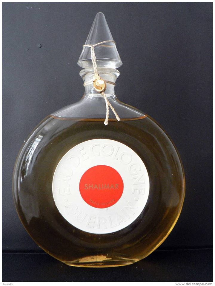 Lots of bottles here! On the glass table on the left there’s Lucien Lelong Tailspin cologne; on the right counter, there’s a Guerlain flacon montre and there’s another one on the second shelf in the background. The first flacon montre is confusing because it contains a green liquid and has a golden disk on the front, so I guess it was a promotional factice. The second one has an orange disk, so it’s definitely Shalimar eau de cologne.
