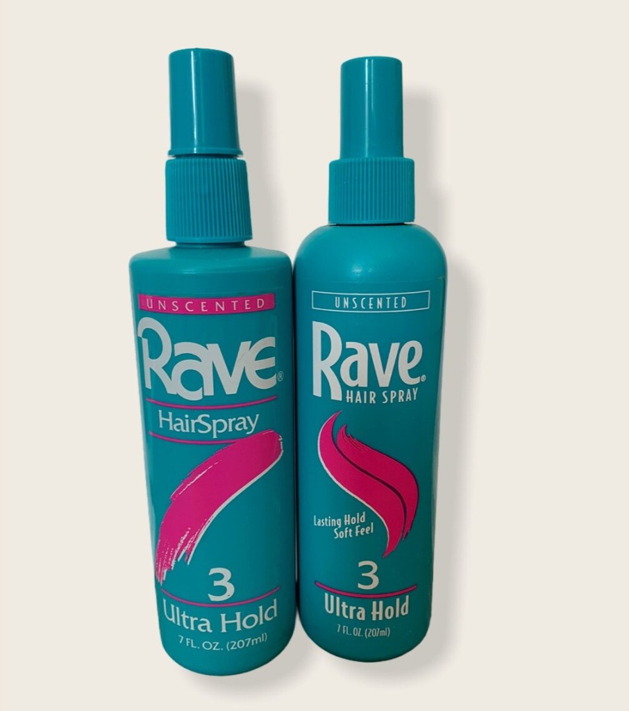 On the right side of the shelf there are some bottles of Rave unscented hairspray.