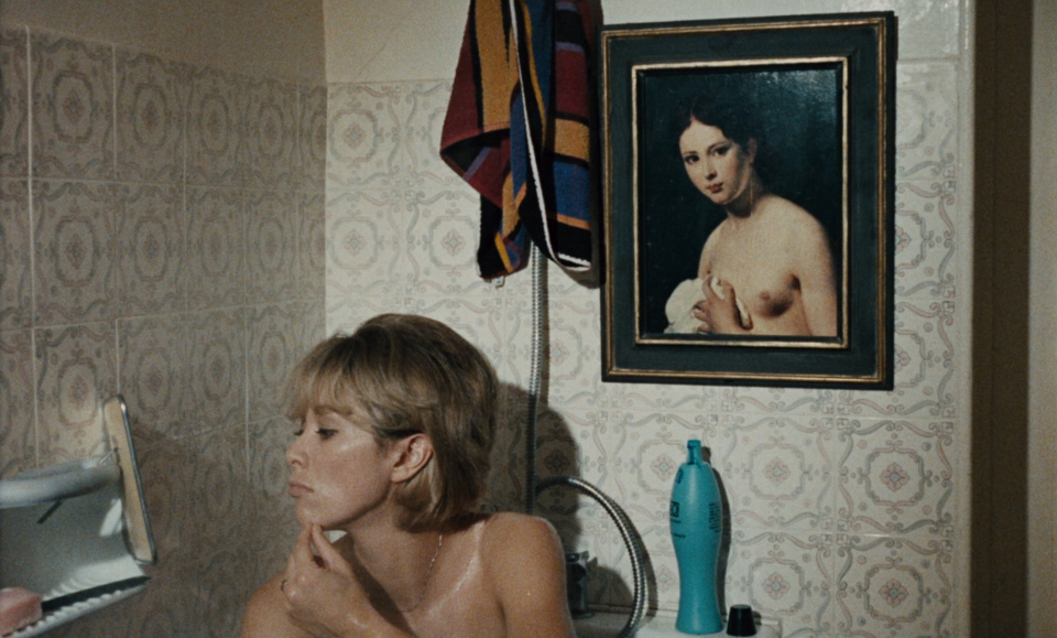 Marie (Myriem Roussel) stops at a Lancôme counter to check some cosmetics. She wants to try some lipsticks: the ones on the right are standard testers, while the ones on the left look more interesting.