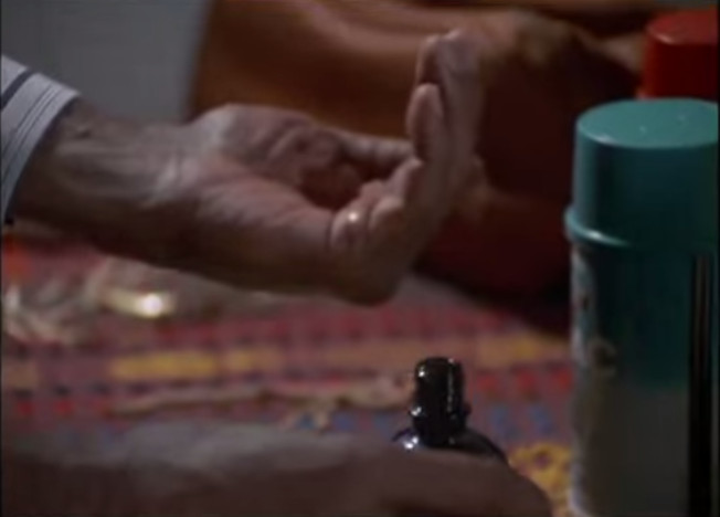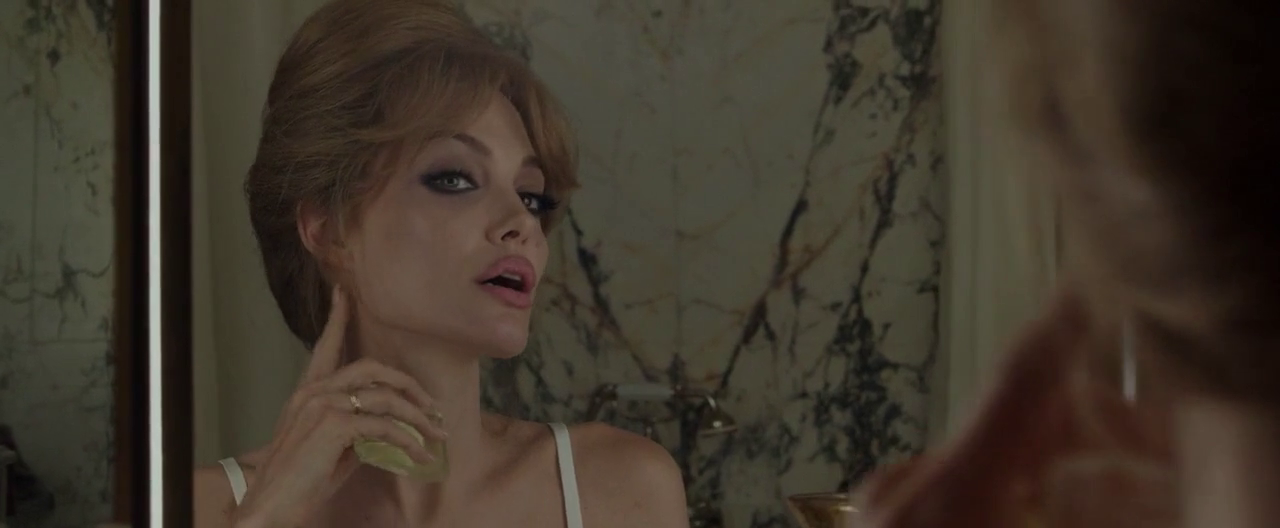 The other two perfume bottles are both by Jean Patou. They could house either Joy, the unique jasmine and rose fragrance by Henri Alméras launched in 1930, or 1000, a floral fragrance by Jean Kerleo launched in 1972. According to a reader of this blog, in a 1999 interview Elsa said she wore 1000.