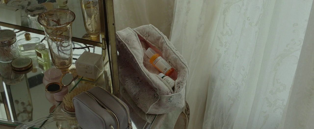 The aforementioned work table can be seen in the picture above: on it there are some pieces of jewellery, beauty items and a massive bottle that would be impossible not to notice.