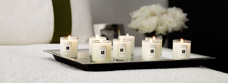 The candle on the metal tray is by Jo Malone.