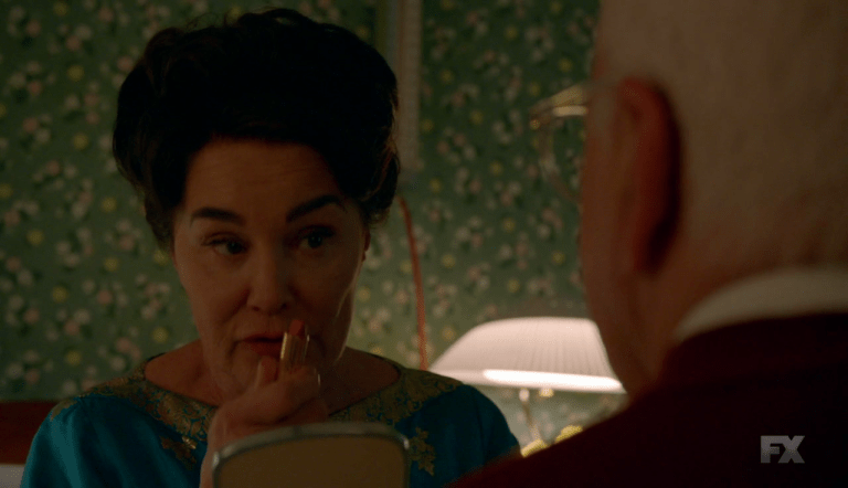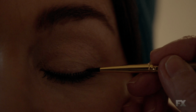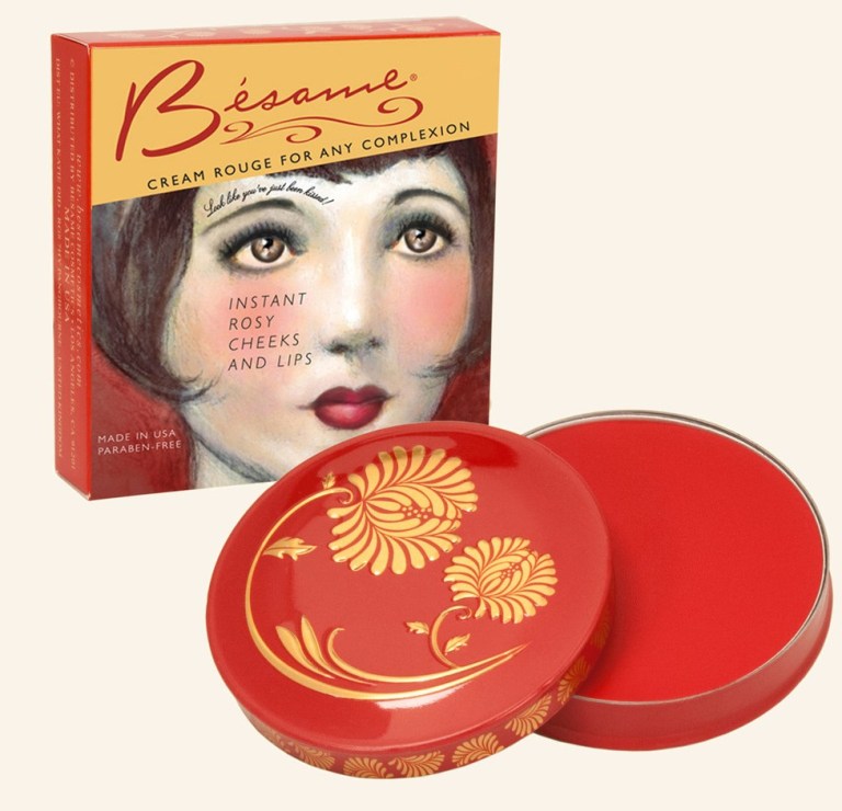 In the same scene, she also puts on a Bésame Cosmetics red lipstick.