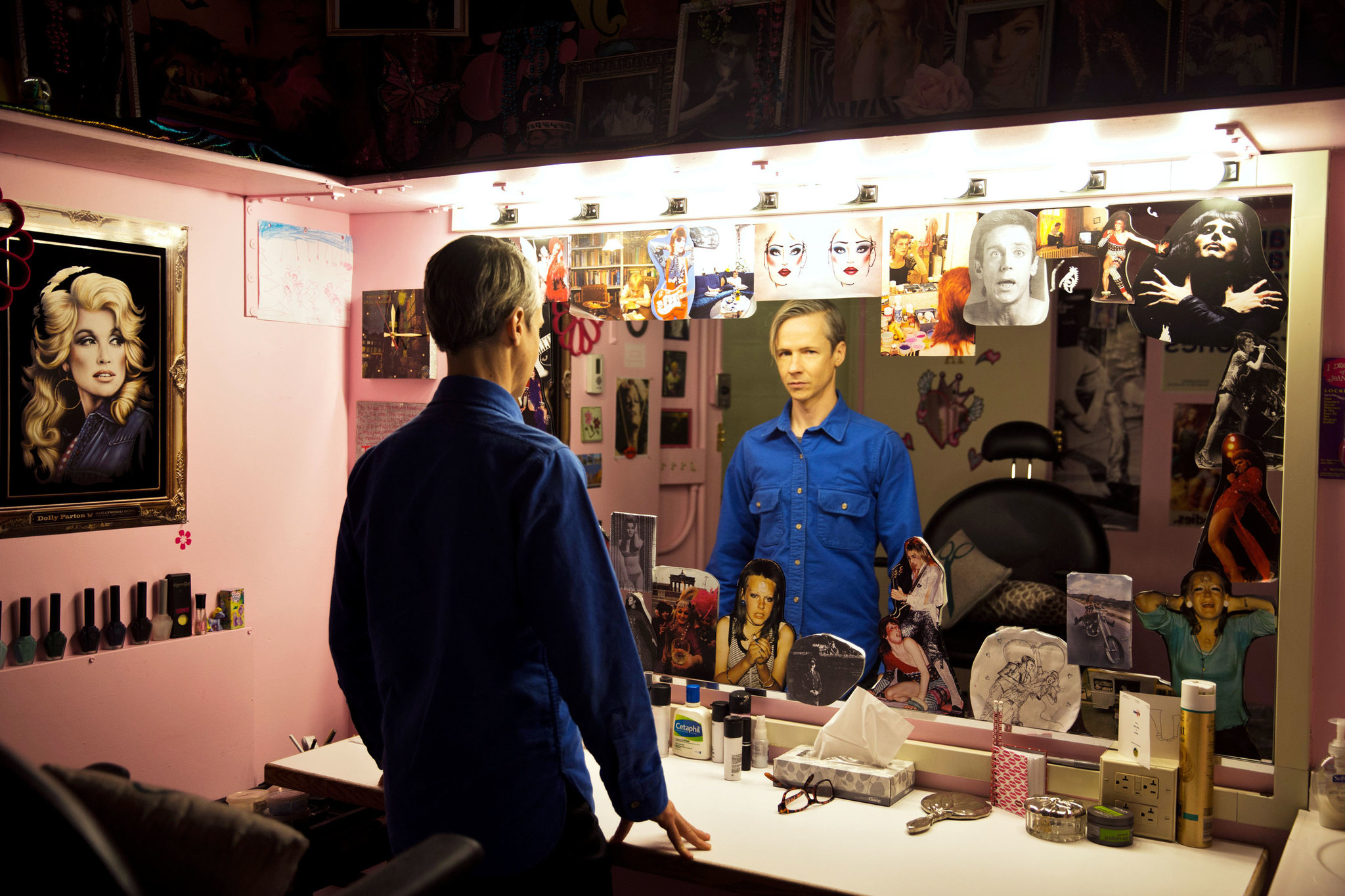 John Cameron Mitchell’s dressing room at the Belasco Theatre is one of the best dressing rooms I’ve ever written about. The picture above, taken by Todd Heisler in 2015, is very simple but hugely inspiring. Freddie Mercury, Dolly Parton, David Bowie and Mick Ronson – their pictures are plastered on the walls and on the mirror – surely served as source of inspiration for Hedwig, the character JCM played in the 2001 film he directed. Besides this show-biz eye candy, there are lots of interesting products.