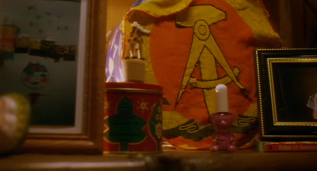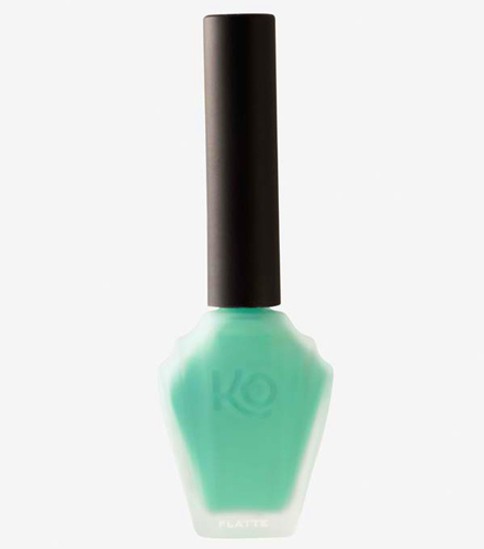 On the left wall there is a row of Ko nail polishes in different shades. This line (also known as Knock Out) is a product of the creativity of Mike Potter, the artist who created the iconic hair and makeup looks for Hedwig & the Angry Inch. I think the shades here are Liberty (patina green), Park (matte park bench green), Flatte Black (two bottles), Indi (dark navy), Flatte Top top coat and Eel (pastel chartreuse) in the black box.