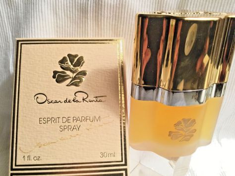 There are three bottles of Oscar de la Renta Esprit de Parfum on Amber’s dressing table. This is likely to be a historically accurate choice: Oscar, the first Oscar de la Renta fragrance, was created by Jean-Louis Sieuzac and launched in 1977.