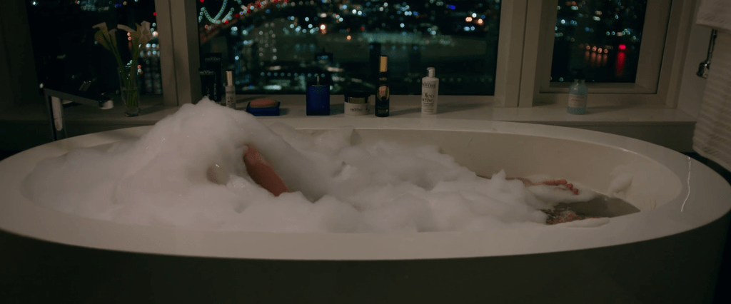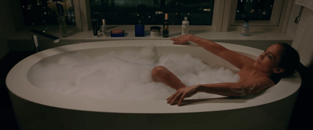 Kat (Jennifer Lopez) takes a bath after her concert went terribly wrong.