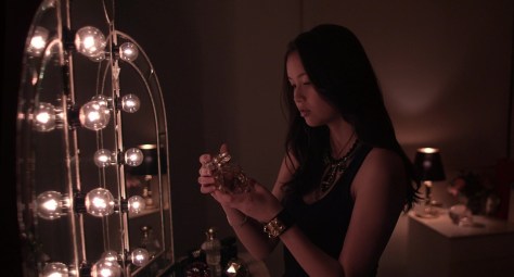Elie Saab Le Parfum, Annick Goutal, Chanel Coco Noir and Paco Rabanne Lady Million perfumes on Lindsay Lohan’s dressing table.