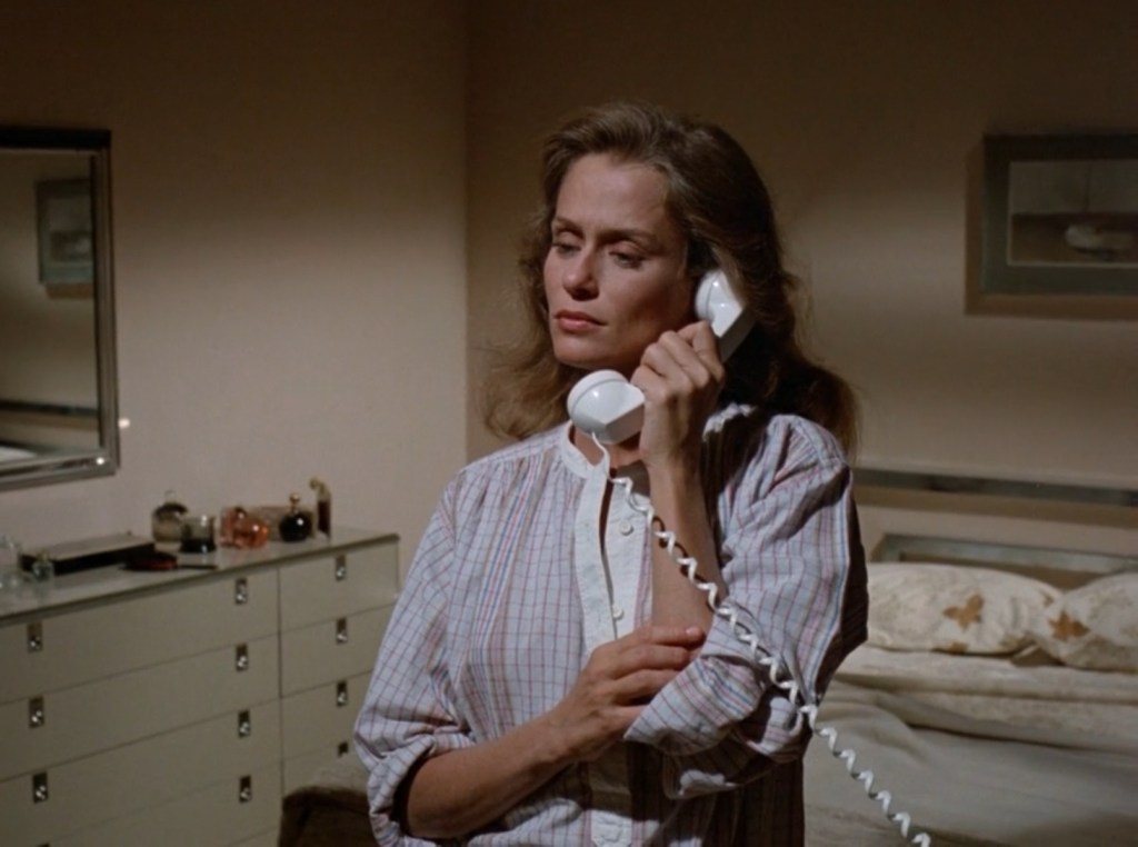 The same objects appear in a scene where Marion (Catherine Deneuve) is sitting at her vanity. In this case, another bottle of Eau de Lanvin Arpège can be seen in front of the mirror.