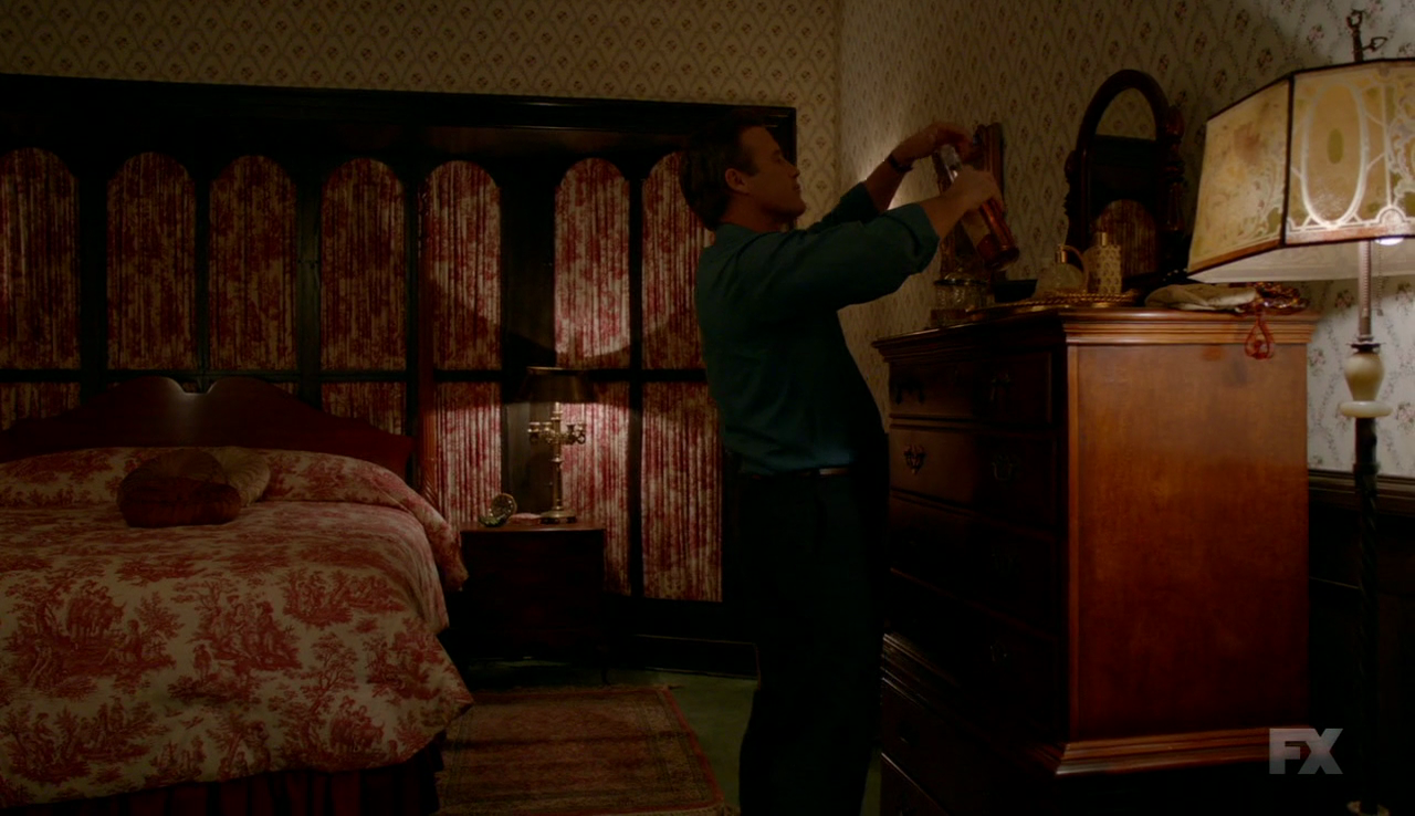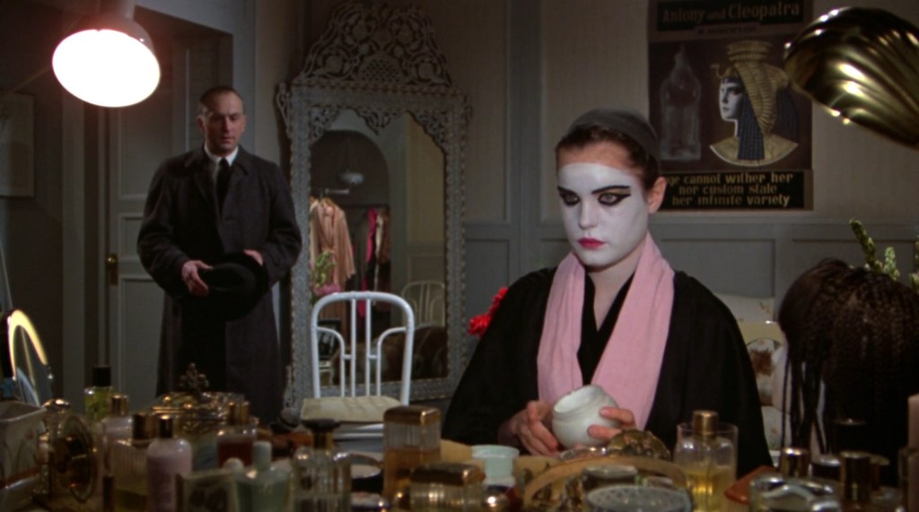 The same objects appear in a scene where Marion (Catherine Deneuve) is sitting at her vanity. In this case, another bottle of Eau de Lanvin Arpège can be seen in front of the mirror.