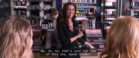 Finally, when they go to a hairdresser, we can see Jodi holding two lipgloss tubes and wondering what’s the difference between a regular gloss and a lipglass, another MAC product which has a glass-like finish (hence the name). Obvious difference for any beauty lover, incomprehensible for someone who doesn’t care about make-up.