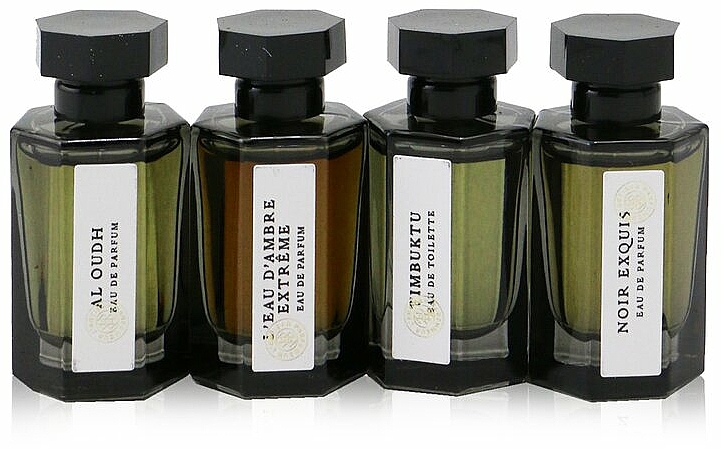 Sitting on the top bottom there are three bottles by L’Artisan Parfumeur. Reading the front stickers is impossible, so there’s no way to tell what fragrances they contain.