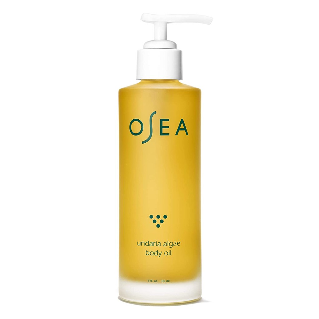 The pump bottle on the bath top is Osea Undaria Algae body oil.