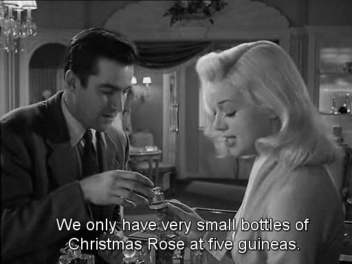 yieldtothenight_bornunicorn (3)Mary Price Hilton (Diana Dors) first meets Jim Lancaster (Michael Craig) at the perfume shop where she works as a shop assistant. He falls in love with her perfume, Christmas Rose. It’s a fictitious perfume, but I’ve found out some brands have launched fragrances with the same name. Thinking of Mary’s dreamy and idealistic personality, her perfume could be a floral with warm spicy notes.