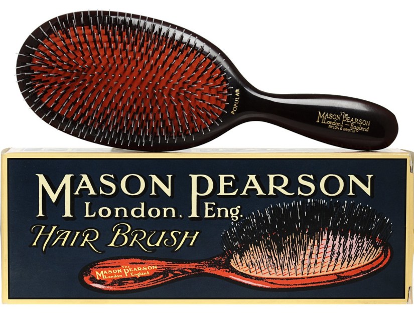 Lumir (Juliette Binoche) and her daughter Charlotte (Clémentine Grenier) are visiting Fabienne on the set of her latest film. While Charlotte is sitting at her grandmother’s vanity, we can see a Mason Pearson box by the mirror. Later in the film, Lumir is holding a brush: it’s a wooden brush with boar bristle and nylon tufts by the British brand.