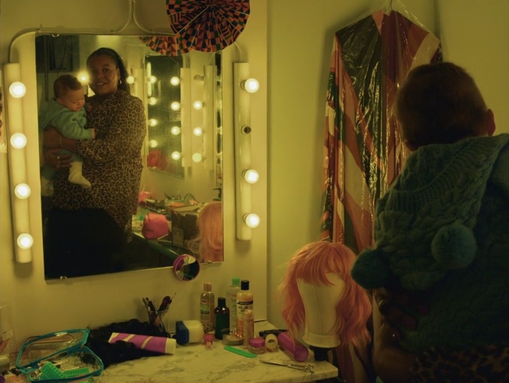 The last part of the film is set after the main tragic events told previously. Cleve and Angel have a conversation in the hairdresser’s dressing room during another hairdressing competition. The camera pans over the room, giving us the chance to see several haircare products.