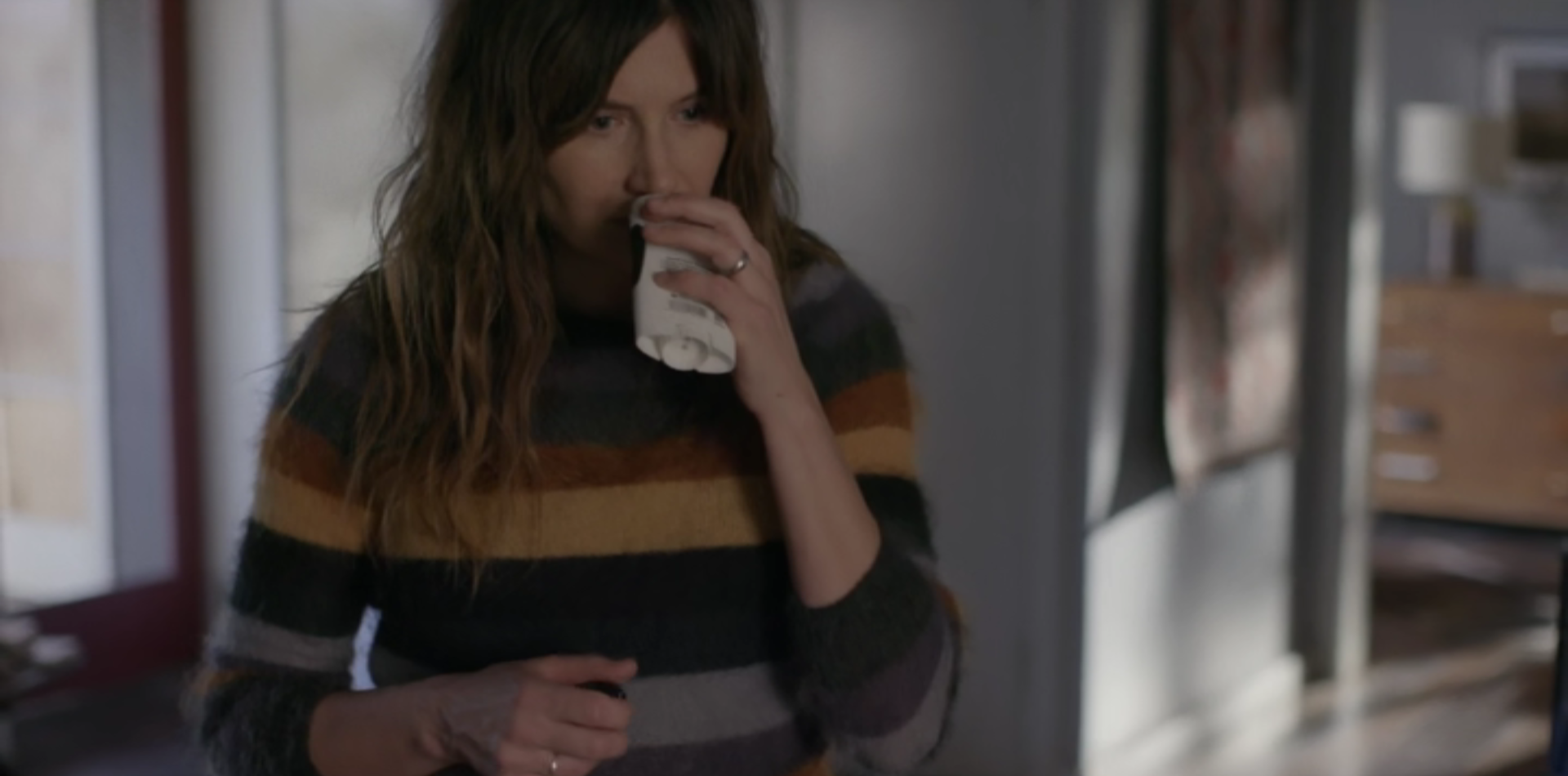 When she moves into her own bathroom, we can see two Palmer’s products (coconut body oil in a spray bottle and cocoa butter formula).