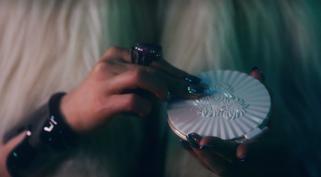 Among the many beauty products on her dressing table, there’s the beautiful opaline pump bottle of Yves Saint Laurent Paris body lotion.