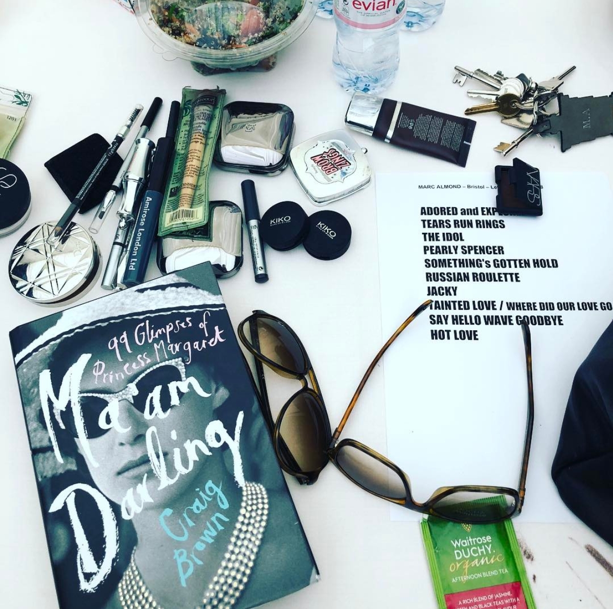 I’ve got a thing for Marc Almond’s dressing rooms. The British singer is often on tour, and he frequently posts pictures of the make-up products he wears in concert. The one above was taken in June 2018, backstage at the Let’s Rock Bristol festival.