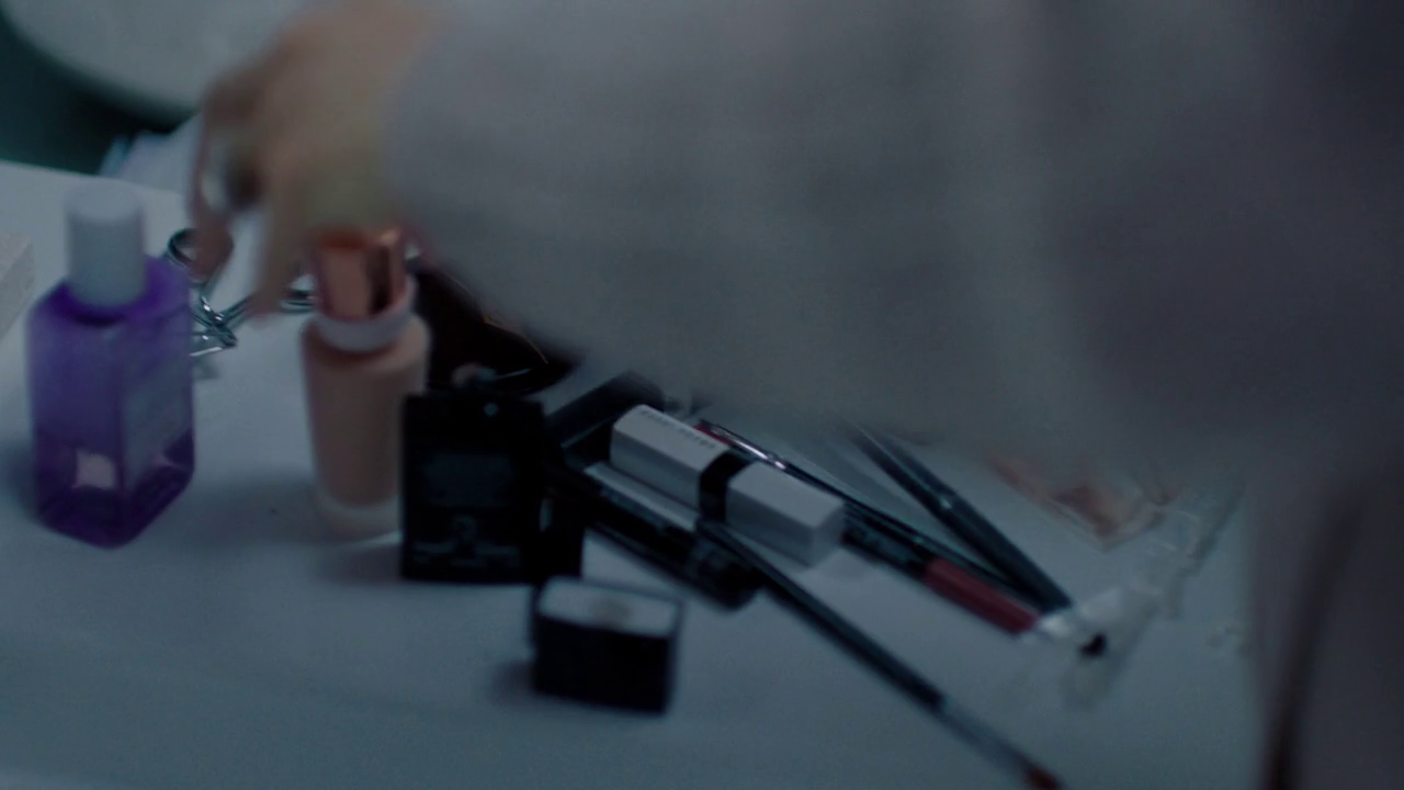 On the table you can also see several mirrors, make-up brushes and products, among which Yves Saint Laurent glosses, NARS lipsticks and a couple of compacts.