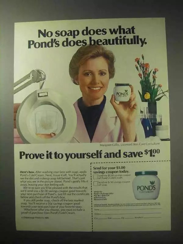Even in this case, the choice is not totally accurate: in the advert above you can see what the Pond’s jar looked like in 1985. In the film the jar has the new packaging, not the original.