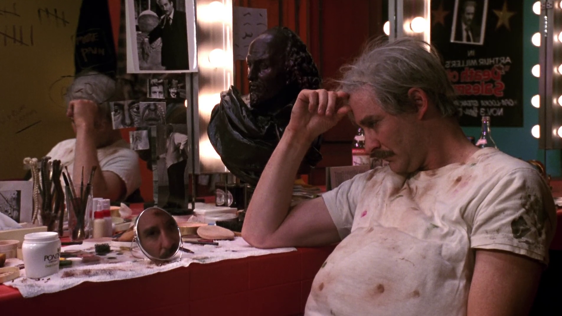 Jeffrey Anderson (Kevin Kline) is a formerly famous tv actor who now works at the Opa Locka Playhouse in Florida, which also includes a messy and noisy restaurant. He’s performing as Willy Loman in Death of a Salesman by Arthur Miller, but he’s disenchanted and sad, as shown by his dressing room.