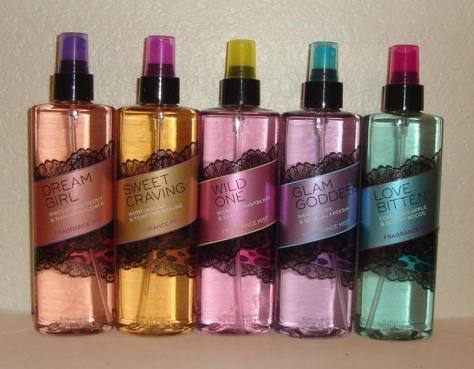 Victoria’s Secret Wild One midnight raspberry and sexy lily fragrance mist and Rebel Green yoga mat spray in Bliss on Hanna’s dressing table.