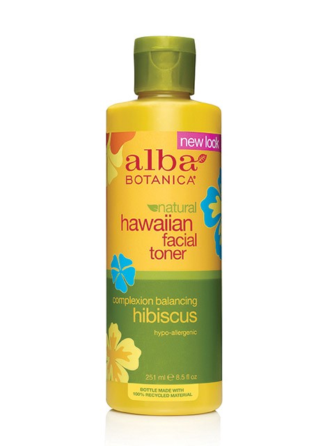 Alba Botanica Natural Hawaiian Hibiscus facial toner and Pineapple facial cleanser, L’Oreal Paris Pure Zone toner on Emily’s dressing table.