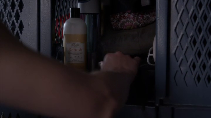 Trader Joe’s Refresh citrus conditioner with vitamin C in Paige’s locker.