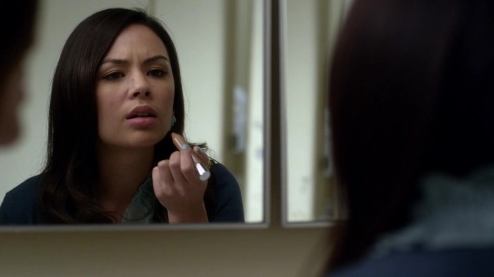 Mona Vanderwaal (Janel Parrish) wearing Clinique Chubby Stick moisturizing lip colour in Heaping Hazelnut.