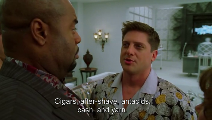 Ned (Lee Pace) and Emerson Cod (Chi McBride) are working on a murder/suicide case. They smell something strange; Emerson thinks it’s Ned’s cologne, but the Pie-Maker says he wears none. Maybe it’s Emerson’s cologne, since he’s the one who uses it. I wonder what his cologne of choice is… Any thoughts?